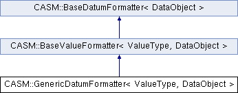 Inheritance diagram for CASM::GenericDatumFormatter< ValueType, DataObject >:A DatumFormatter that returns a value of specified type, via functions that may be specified at runtime.