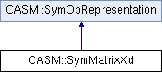Inheritance diagram for CASM::SymMatrixXd:Generalized symmetry matrix representation for arbitrary dimension Can be used to describe application of symmetry to N-dimensional vector spaces Use for 3-dimensional transformations if they do not describe coordinate transformations.