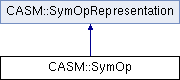 Inheritance diagram for CASM::SymOp:SymOp is the Coordinate representation of a symmetry operation it keeps fraction (FRAC) and Cartesian (CART) information about how a symetry operation transforms 3D spatial coordinates.