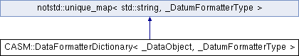 Inheritance diagram for CASM::DataFormatterDictionary< _DataObject, _DatumFormatterType >:Parsing dictionary for constructing a DataFormatter<DataObject> object.