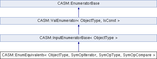 Inheritance diagram for CASM::EnumEquivalents< ObjectType, SymOpIterator, SymOpType, SymOpCompare >:Enumerate over all equivalents.